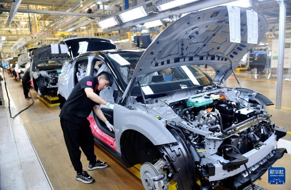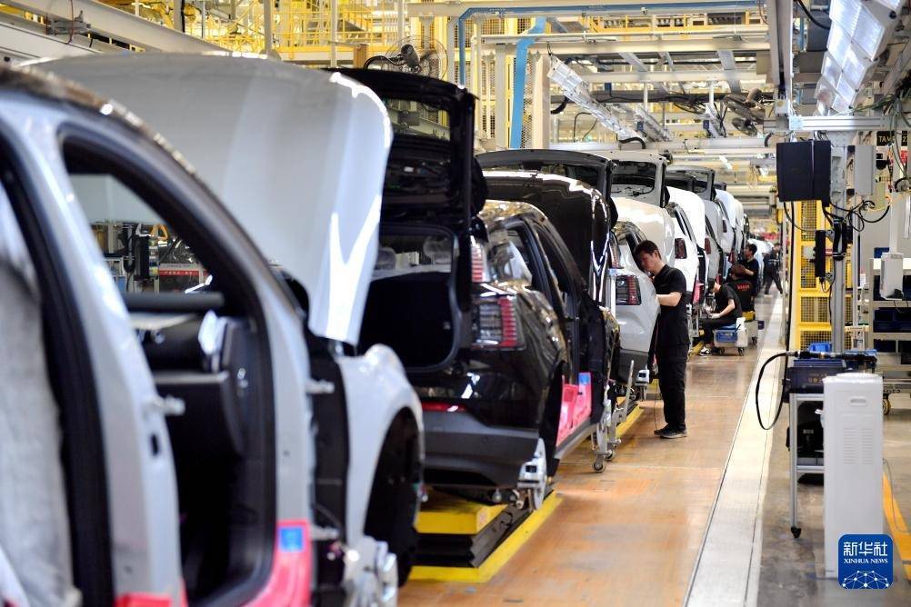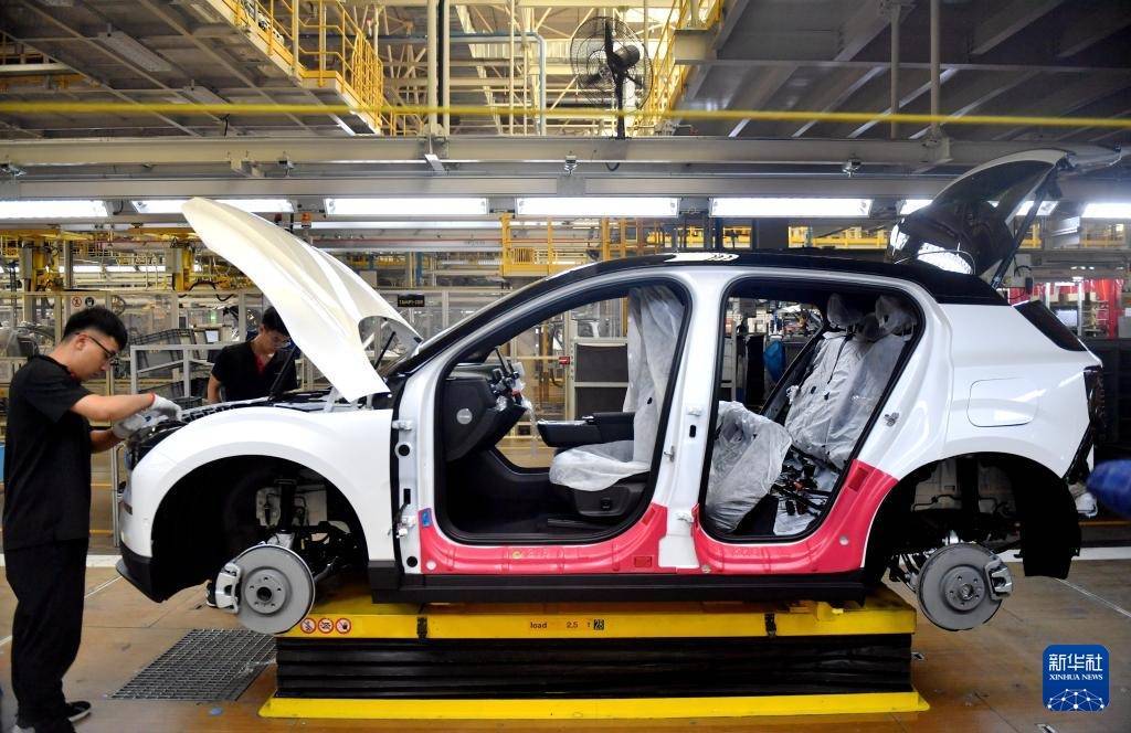6月19日,工作人员在张家口南山汽车产业基地一家车企的总装车间组装汽车。